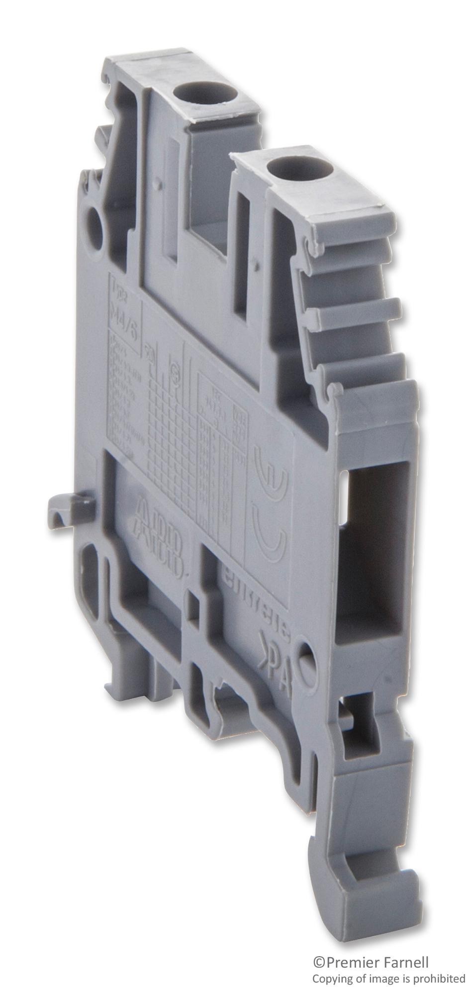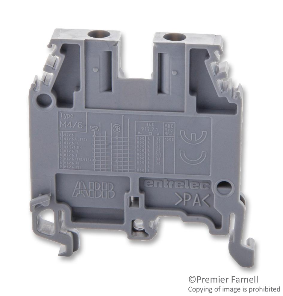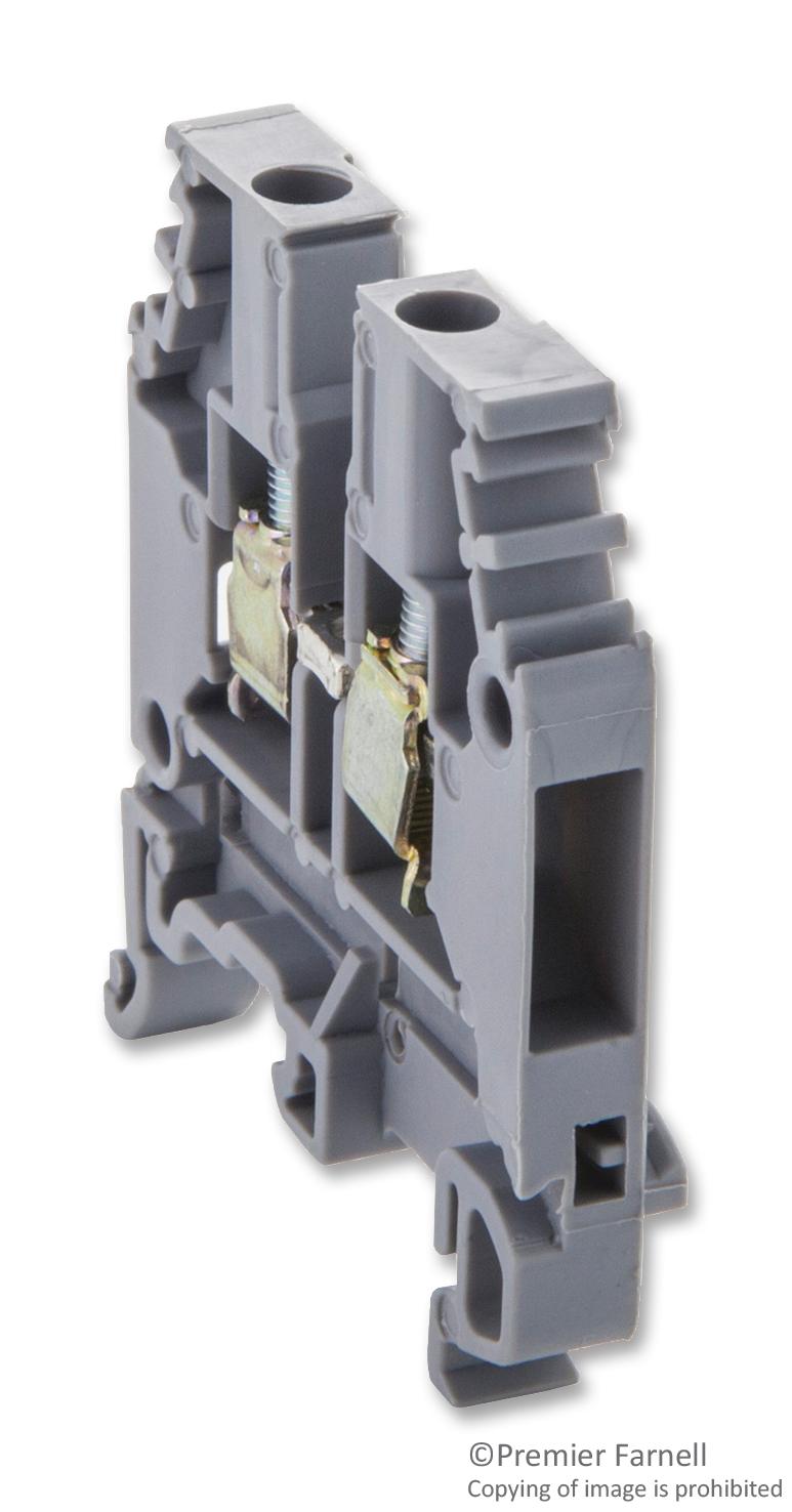 The 011511607 from Entrelec UK is a feed through and ground terminal block with screw connection. This terminal block is suitable for wire ranging from 22AWG to 10AWG.