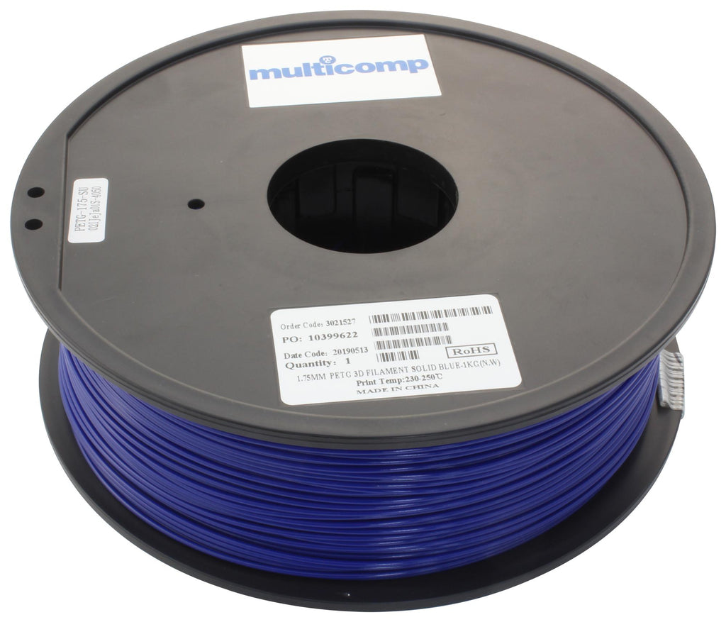 This is a 3D Printer Filament, PETG, 1.75 mm, Solid Blue, 250 °C Melting Temp product from MULTICOMP with the model number MC011473