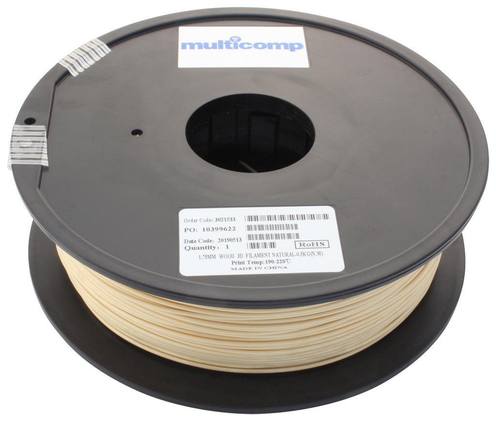 This is a 3D Printer Filament, Wood, 1.75 mm, Natural, 220 °C Melting Temp product from MULTICOMP with the model number MC011478