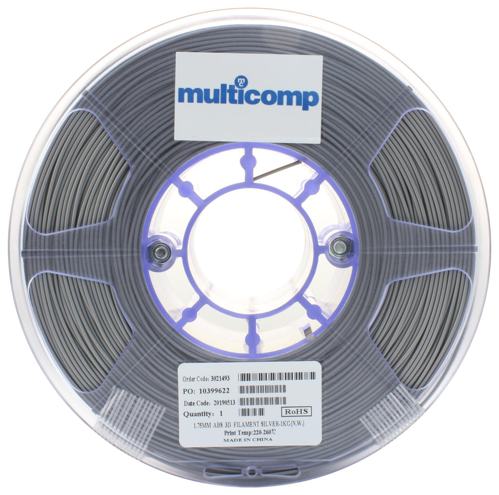 Multicomp MC011442 3D Printer Filament ABS 1.75 mm Silver 260 °C Melting Temp