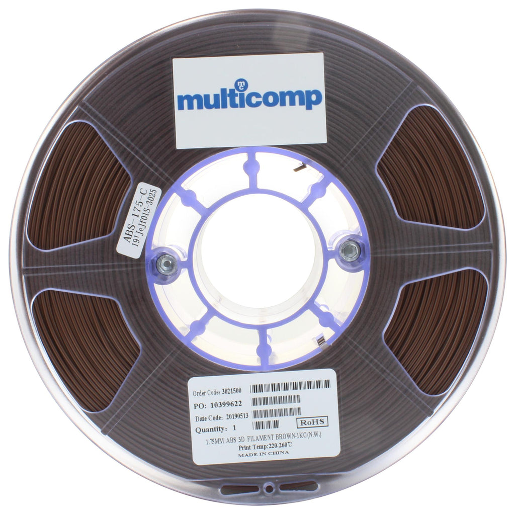 This is a 3D Printer Filament, ABS, 1.75 mm, Brown, 260 °C Melting Temp product from MULTICOMP with the model number MC011449