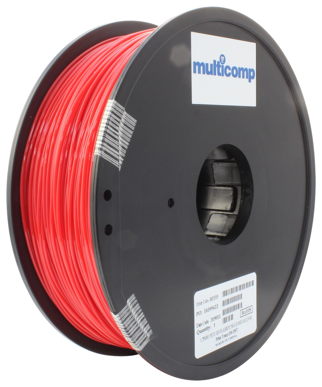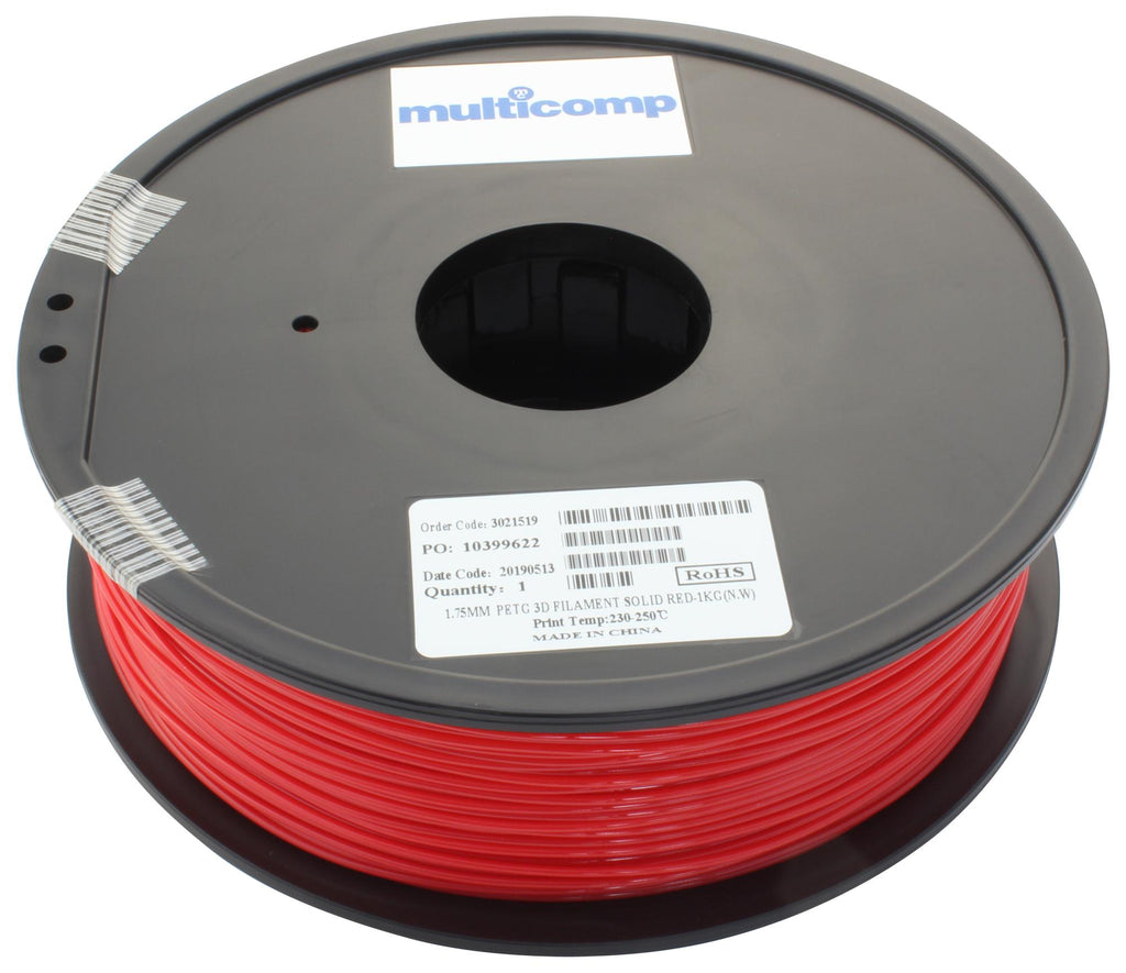 Multicomp MC011466 3D Printer Filament Petg 1.75 mm Solid Red 250 °C Melting Temp