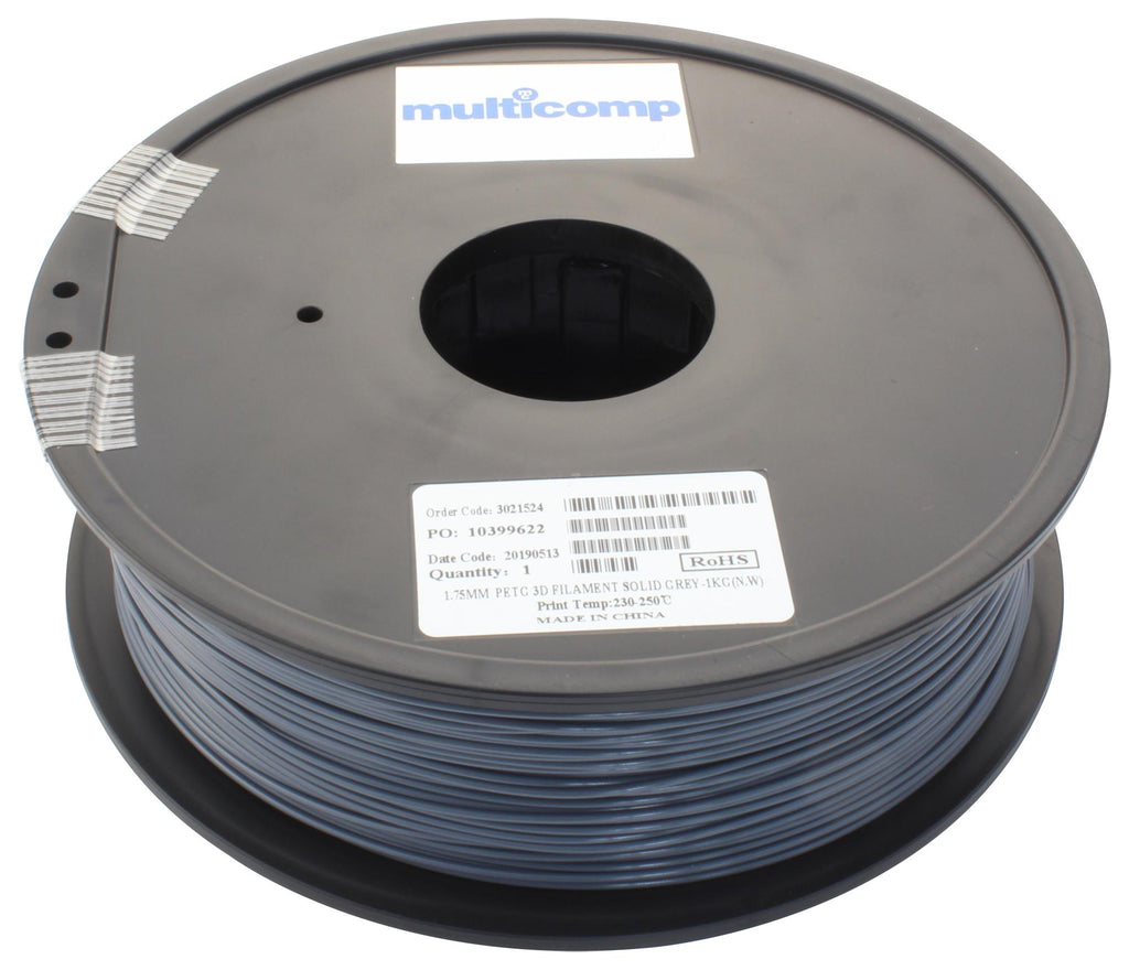 Multicomp MC011470 3D Printer Filament Petg 1.75 mm Solid Grey 250 °C Melting Temp