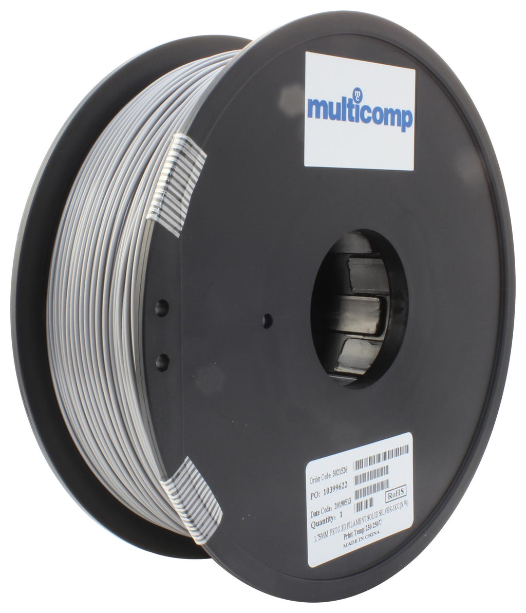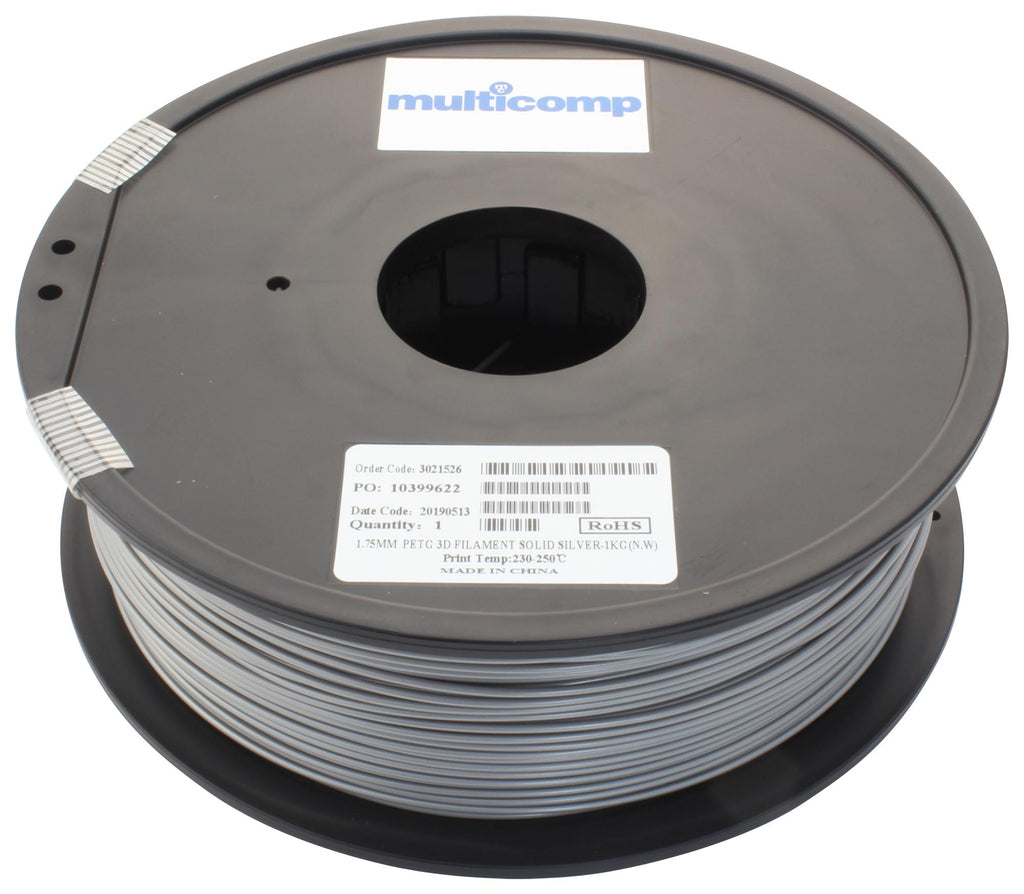 Multicomp MC011472 3D Printer Filament Petg 1.75 mm Solid Silver 250 °C Melting Temp
