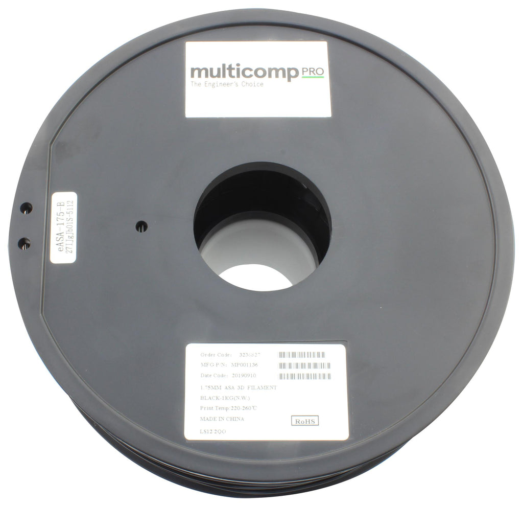 Multicomp PRO MP001136 MP001136 3D Printer Filament 1.75mm Dia Black ASA 1 kg