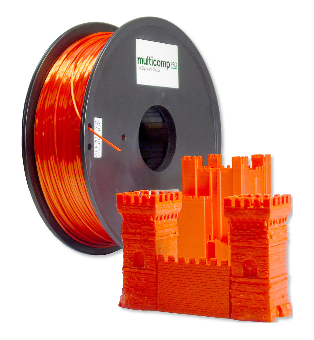 Multicomp Pro Silk PLA Filaments provides very shinny surface to provide silk-like appearance of the 3D printed items. Much more shiny than normal filaments, eco-friendly and easy to print. Multiple colours available: Cyan, Jacinth, Yellow, White, Green, Purple, Red, Blue, Pink.