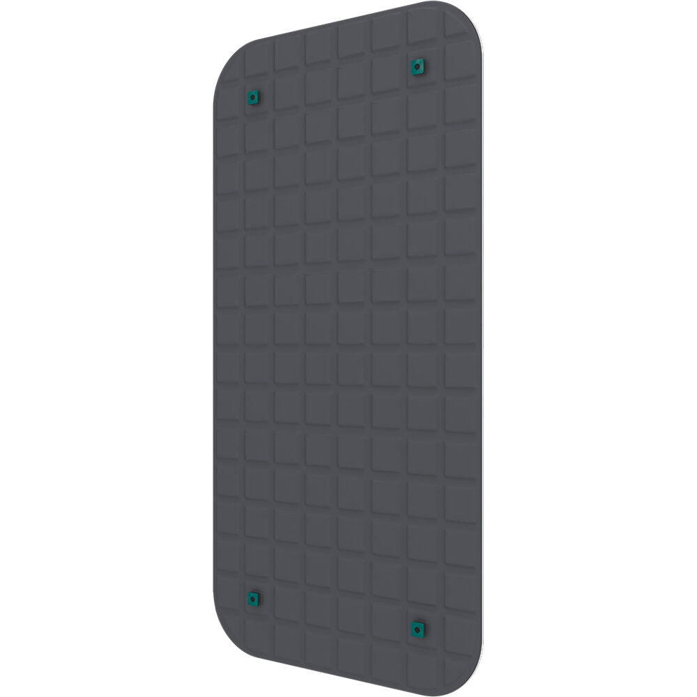 The gray VicOffice Wall is a 23.4 x 46.8" thin acoustic panel that can be easily mounted and dismounted to any glazed panel without compromising the glazing cleaning process. Though it has low performance on medium frequencies due to its minimal thickness, Vicoustic has developed its installation mechanism to create an air gap between the glaze and VicOffice Wall. This gap increases the performance on the medium and high frequencies, which is exactly where speech frequencies are.