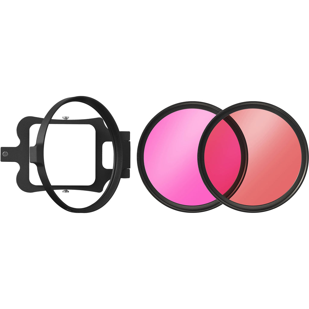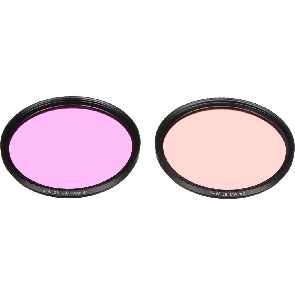 Capture accurate colors underwater with your HERO4, HERO3+, or HERO3 camera. This B+W Underwater Kit includes a red filter, a magenta filter, and a 58mm filter mount for the standard housing of the camera. Compensate for the color cast caused in water once you are under several feet of depth. The red filter is for blue and tropical waters, and the magenta filter is for green and salt waters. The filters feature a hinged frame that allows them to be quickly removed when you want to use the camera out of the water.