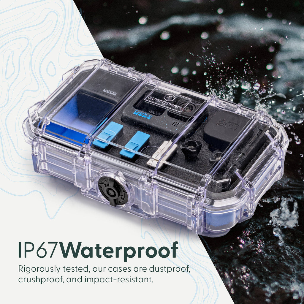Carry and protect your action camera using the black TOUGHBOX CX56 Protective Case for GoPro from Evergreen Cases. This case features a durable, custom-cut insert for a HERO 9,10, 11, or 12 and will also fit older HEROs but not as snugly. The waterproof, dustproof, and impact-resistant case has a three-step TwistLock latch and a flip-latch pressure-equalization system. It comes with an SD card holder and two plastic keys.