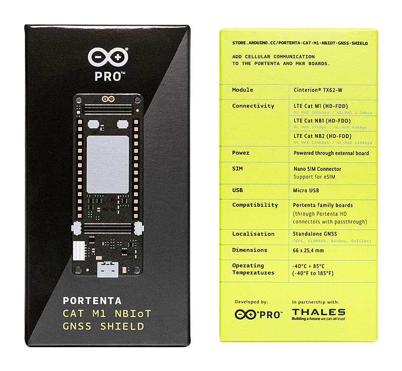 Arduino® Portenta Cat. M1/NB IoT GNSS Shield allows global connectivity and positioning capabilities of Portenta or MKR board. The shield leverages a Cinterion TX62 wireless module by Thales, designed for highly efficient, low-power IoT applications to deliver optimized bandwidth and performance. The Portenta Cat. M1/NB IoT GNSS Shield combines with the strong edge computing power of the Portenta H7 to enable the development of asset tracking and remote monitoring applications in industrial settings, as well as in agriculture, public utilities and smart cities. The shield offers cellular connectivity to both Cat.M1 and NB-IoT networks with the option to use eSIM technology. Easily track your valuables - across the city or worldwide - with your choice of GPS, GLONASS, Galileo or BeiDou.
