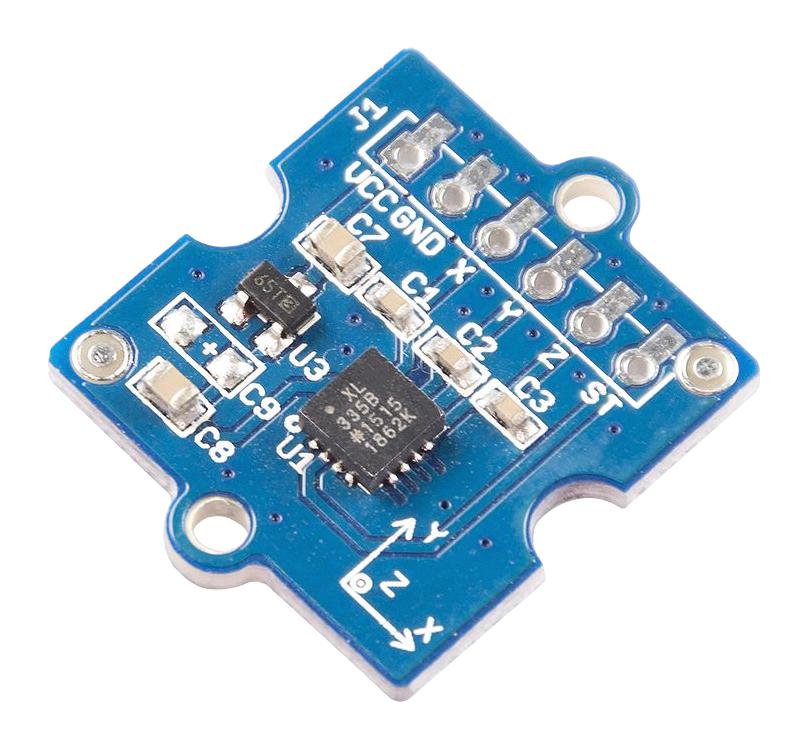 Grove - 3-Axis Analog Accelerometer (ADXL335) module was designed as an ADXL335 breakout board. The ADXL335 is a triple axis MEMS accelerometer with a low power consumption of 150 µA in the measurement mode. The ADXL335 can measure the acceleration with a minimum full-scale range of ±3 g. It can measure the static acceleration of gravity in tilt-sensing applications, as well as dynamic acceleration resulting from motion, shock, or vibration. With the on-board Grove connector, you can easily plug and play it with your Arduino board. It is used in motion sensor, shock detector, vibration sensor, toy car and robotics.