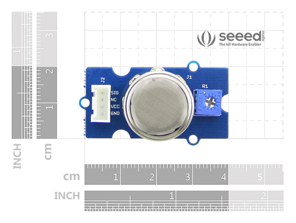Grove - Gas Sensor(MQ2) module is useful for gas leakage detecting(in home and industry). It can detect LPG, i-butane, methane, alcohol, Hydrogen, smoke and so on. Based on its fast response time. measurements can be taken as soon as possible. Also, the sensitivity can be adjusted by the potentiometer.