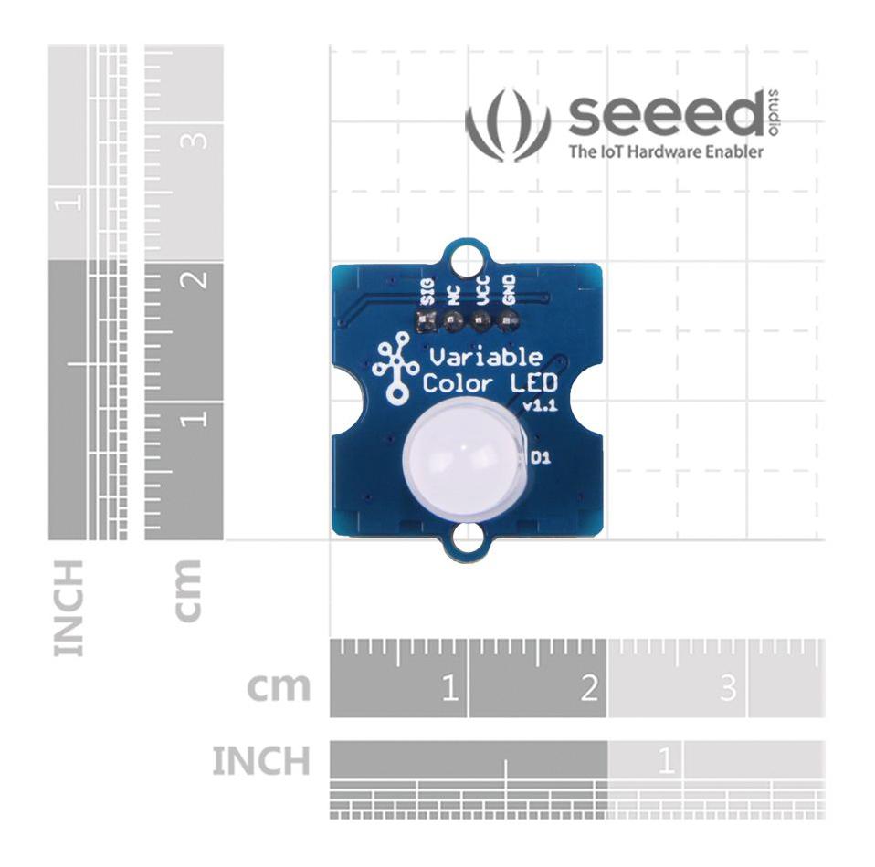 Grove - Variable Colour LED V1.1 is an RGB LED that can be controlled by both digital and PWM signal, there are three changeable resistors on board, with which you can change the colour simply and quickly.