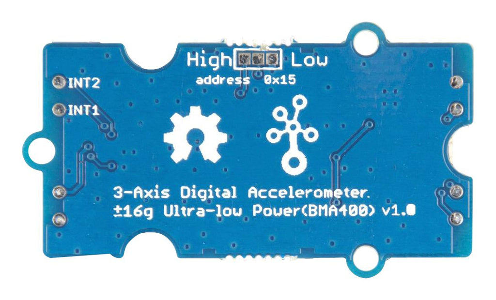 Grove - 3-Axis Digital Accelerometer ±16g Ultra-low Power (BMA400) is a 12 bit, digital, triaxial acceleration sensor with smart on-chip motion and position-triggered interrupt features. It can detect your movement posture, such as Walking, Running, Standing still. Typical applications includes step counting with ultra-low current consumption for extensive battery lifetime, fitness applications / activity tracking, tap / double tap sensing, drop detection for warranty logging and window/door measurements for climate control and alarm systems.
