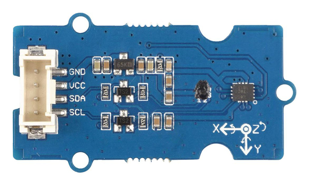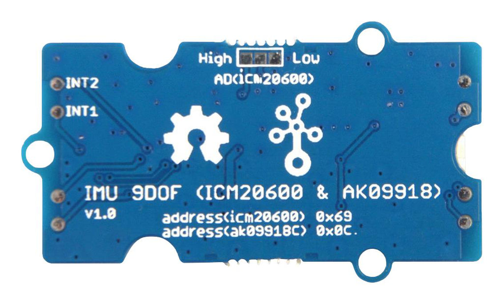 Grove - IMU 9DOF (lCM20600+AK09918) is a 9 Degrees of Freedom IMU (Inertial measurement unit) which combines gyroscope, accelerometer and electronic compass. The LCM20600 is a 6-axis MotionTracking device that combines a 3-axis gyroscope, 3-axis accelerometer. Gyroscope is a device used for measuring or maintaining orientation and angular velocity, normally, we use it to measure spin and twist. Accelerometer is a device that measures proper acceleration. The AK09918 is a 3-axis electronic compass IC with high sensitive Hall sensor technology. We use an electronic compass to measure the magnetic force, which can provide us with the direction information.