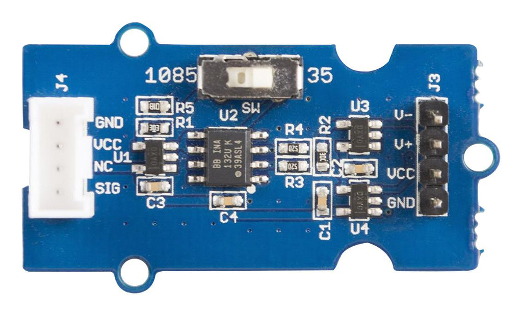 Grove - Differential Amplifier designed for precise differential-input amplification. Input the differential signals of your sensor to this module through the male pins, then your Arduino will get a precisely amplified output from the Grove interface.