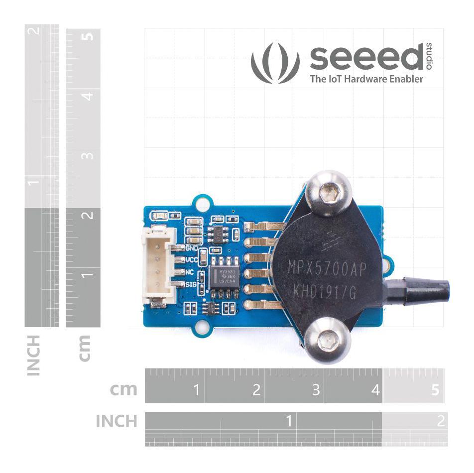 Grove - Integrated Pressure Sensor Kit (MPX5700AP) is made for measuring pressure in the range of 15Kpa to 700Kpa, which is perfectly suitable for making your own Arduino air pressure measurement system.