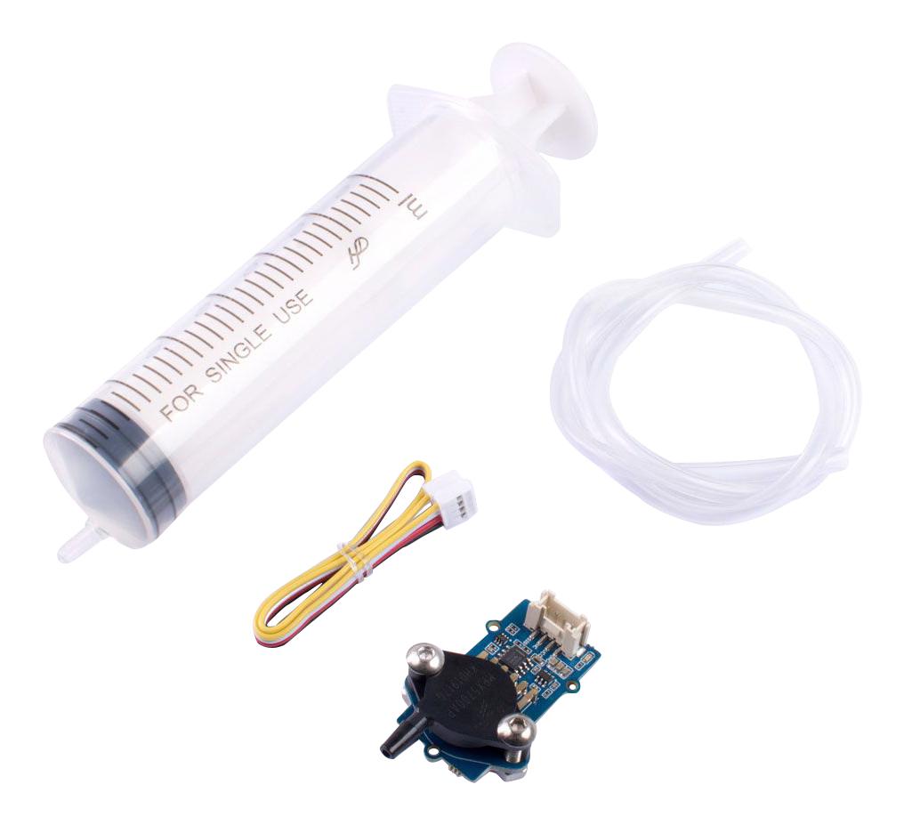Grove - integrated pressure sensor board x 1, 20cm grove cable x 1, 55cm rubber tube x 1, Injector x 1.