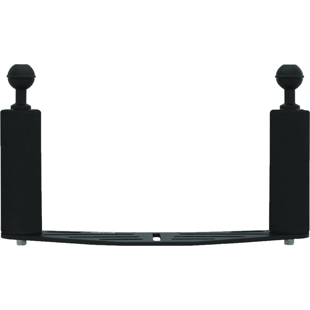 Improve balance and handling while capturing images beneath the surface with Bigblue's Large Camera Tray with Dual Grips, which is designed to hold a housed camera and two arms for strobes or video lights. With an 8" gap between the handles, the tray can accommodate large camera housings. The neoprene grips afford long-term comfort, and feature 1" ball mounts on top for the attachment of arms via the required CLP-02 clamps. Additionally, the balls have O-rings that prevent slipping and allow the clamps to maintain a better hold with less force. Built for extreme durability, the tray base and handles are made from an aluminum alloy that has been anodized to resist corrosion.