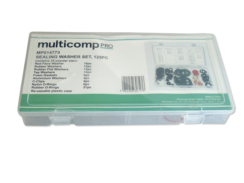 MP014773 is a comprehensive 125-piece Sealing Washer Set, featuring 35 popular sizes and a variety of washers, gaskets, and O-rings. Ideal for plumbers and DIY enthusiasts, this kit provides a reliable solution for sealing and insulation needs. The re-sealable plastic case ensures easy organization and quick access to components.