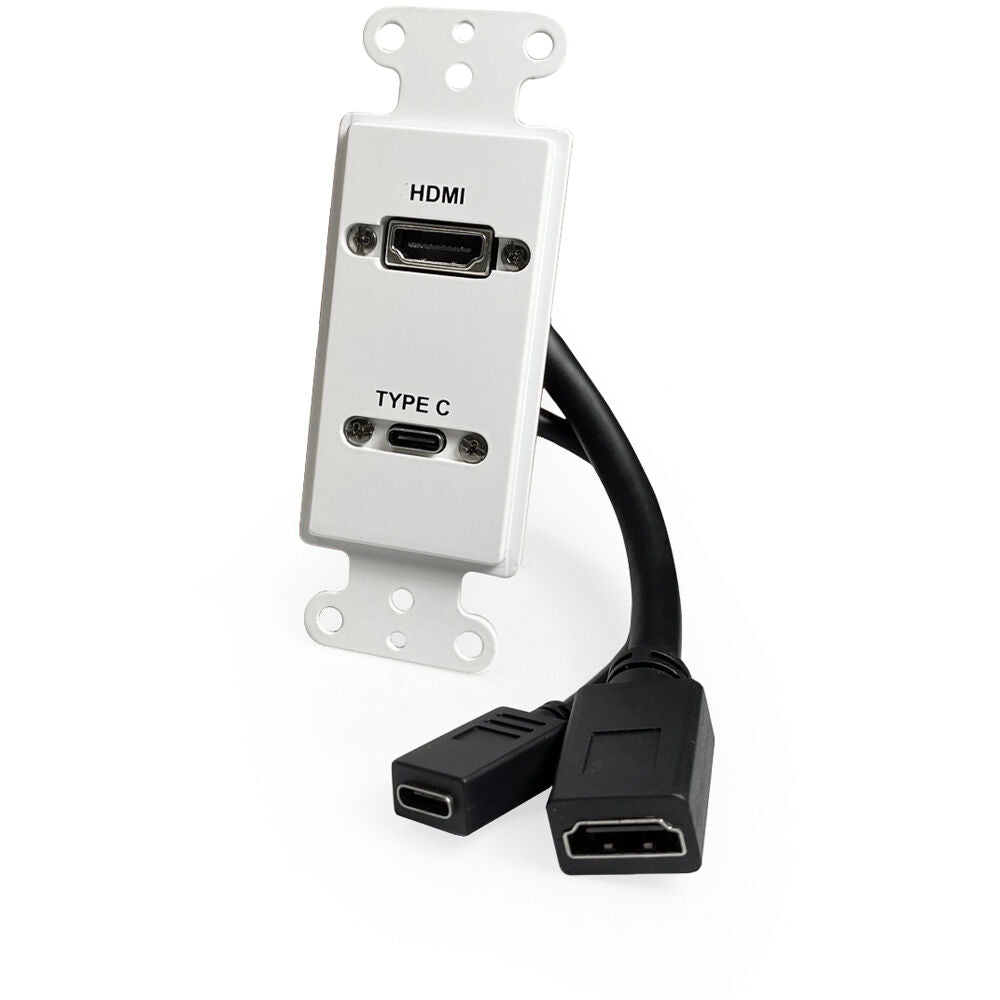 - Comprehensive HDMI and USB Type-C Pigtail Wall Plate (White)