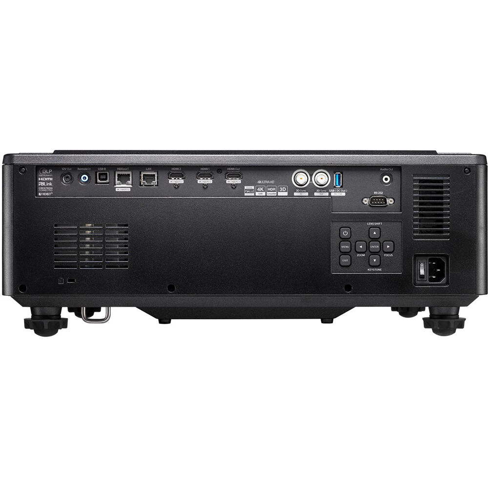 Designed for professional, large venue use, the ZK810ST 8500-Lumen UHD 4K Short-Throw Laser DLP Projector from Optoma Technology delivers a massive 8500 lumens of brightness and a lifelike resolution up to 4K. This kind of quality is thanks to the powerful DuraCore laser light source, part of a projection system that requires minimal maintenance. There's no lamps to replace, it has a lifespan of approximately 30,000 hours, and is housed in an IP5X-rated dust-resistant enclosure. This quality paired with robust longevity makes it ideal for everything from schools to museums. This version of the ZK810 has the advantage of a short throw as well, allowing for placement in tighter spaces.