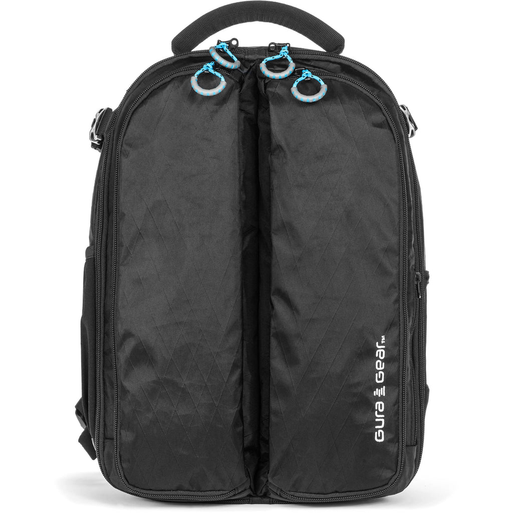 The black Kiboko 2.0 16L Backpack from Gura Gear is designed to keep your mobile photo studio organized as you comfortably and securely carry it to your next destination. Its dual side-by-side camera compartments can each be dedicated to separate camera systems and their accessories using the backpack's adjustable partitions. While either camera compartment can be dedicated toward two DSLRs, two to three lenses and a shoe mount flash, the other can then be used to hold two mirrorless cameras, a flash, and up to three or four lenses.