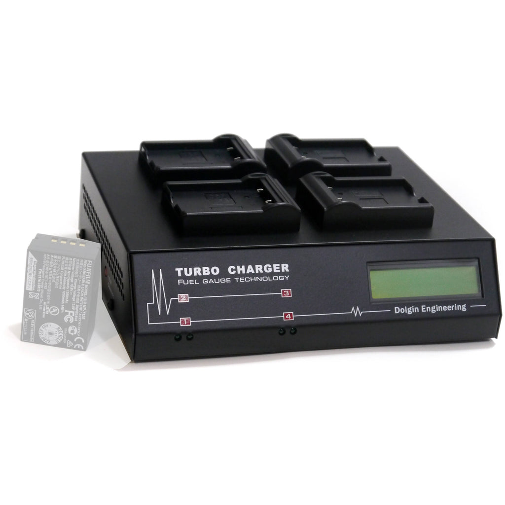 The TC400 Fast Four-Position Battery Charger with Diagnostics Display and Built-In Test / Discharge Module from Dolgin Engineering is a four-position battery charger that features four integrated battery plates supporting Panasonic DMW-BLC12 and non-OEM batteries. It's capable of charging four batteries simultaneously and charges a typical 1,200 mAh battery in about 2.5 hours. As the battery is being charged, a diagnostics LCD displays status in volts, amp hours, and percentage of charge. The percentage of charge is estimated using a proprietary algorithm. A built-in Test/Discharge Module (TDM) allow the user to determine whether a battery is new or old, and on par with its, label. TDM cycles the battery (fully charges and discharges it) and provides a report on its capacity.