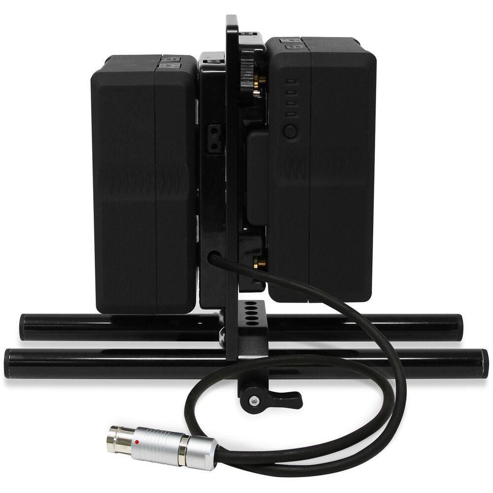 The plate features an integrated 15mm LWS rod clamp to mount quickly and easily onto your rig. It also features one 11 to 17 VDC D-Tap output to power a wide variety of accessories. The battery plate allows your batteries to be hot-swappable, so you can change out one of the battery packs while the other continues to power your equipment.