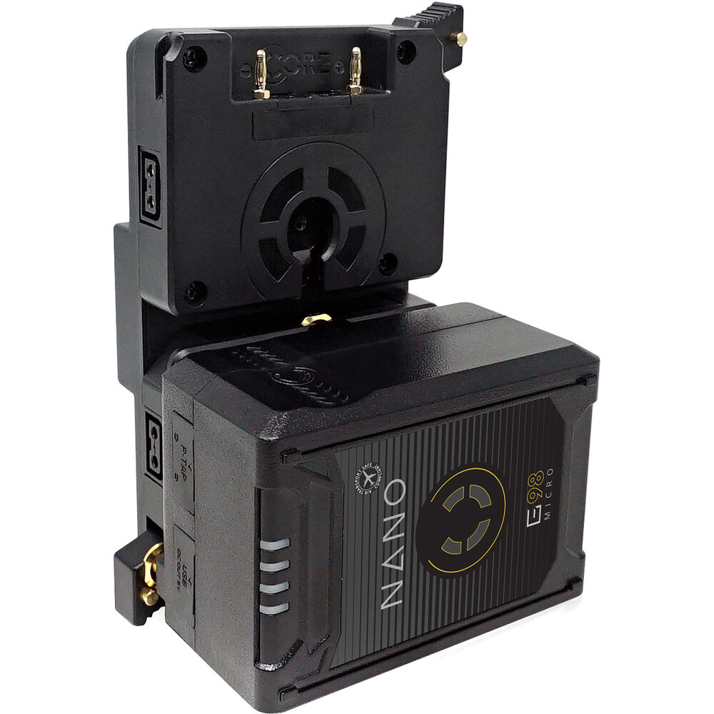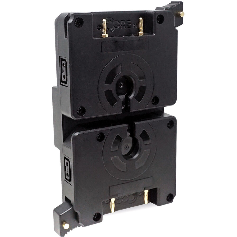 Mount a hot-swap adapter with a compact form factor onto your camera using the Gold mount Micro Battery Hot-Swap Shark Fin Adapter from Core SWX. An 11 to 17 VDC input can feed power to up to two Gold mount batteries and four D-Tap ports on the adapter. Either battery can be removed without disturbing the other thanks to its side-by-side design.