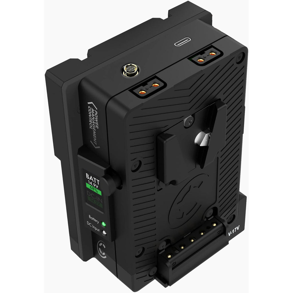 The V-mount PMC Plate with Input/Output for Sony BURANO from Core SWX provides both hot-swap power transitions and additional power outputs for your BURANO or VENICE camera. This plate features a 4-pin XLR DC power input, a USB-C Power Delivery output, a 4-pin Hirose output, and two D-Tap outputs. A side screen displays vital status information.
