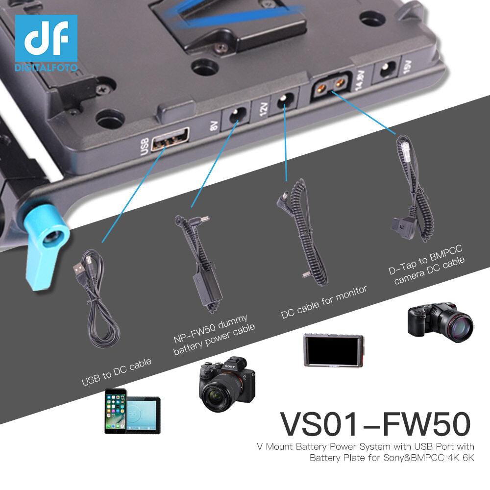 - DigitalFoto Solution Limited V-Mount Battery Plate with 15mm Rod Mount, L-Series Dummy Battery & 3 Cables