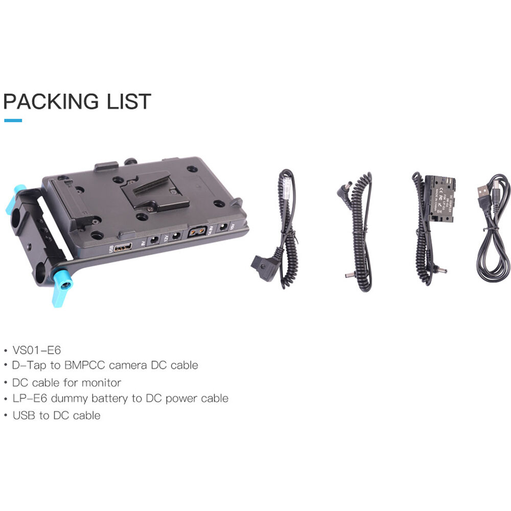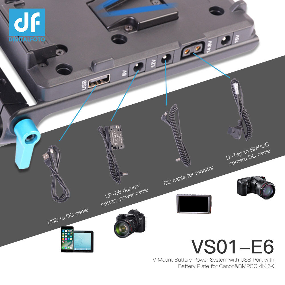 - DigitalFoto Solution Limited V-Mount Battery Plate with 15mm Rod Mount, LP-E6 Dummy Battery & 3 Cables