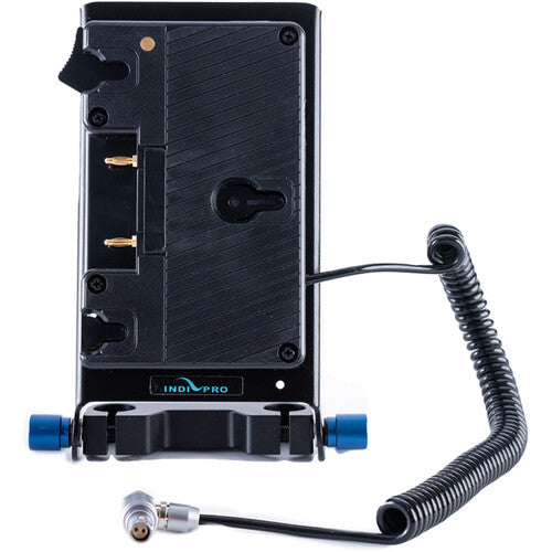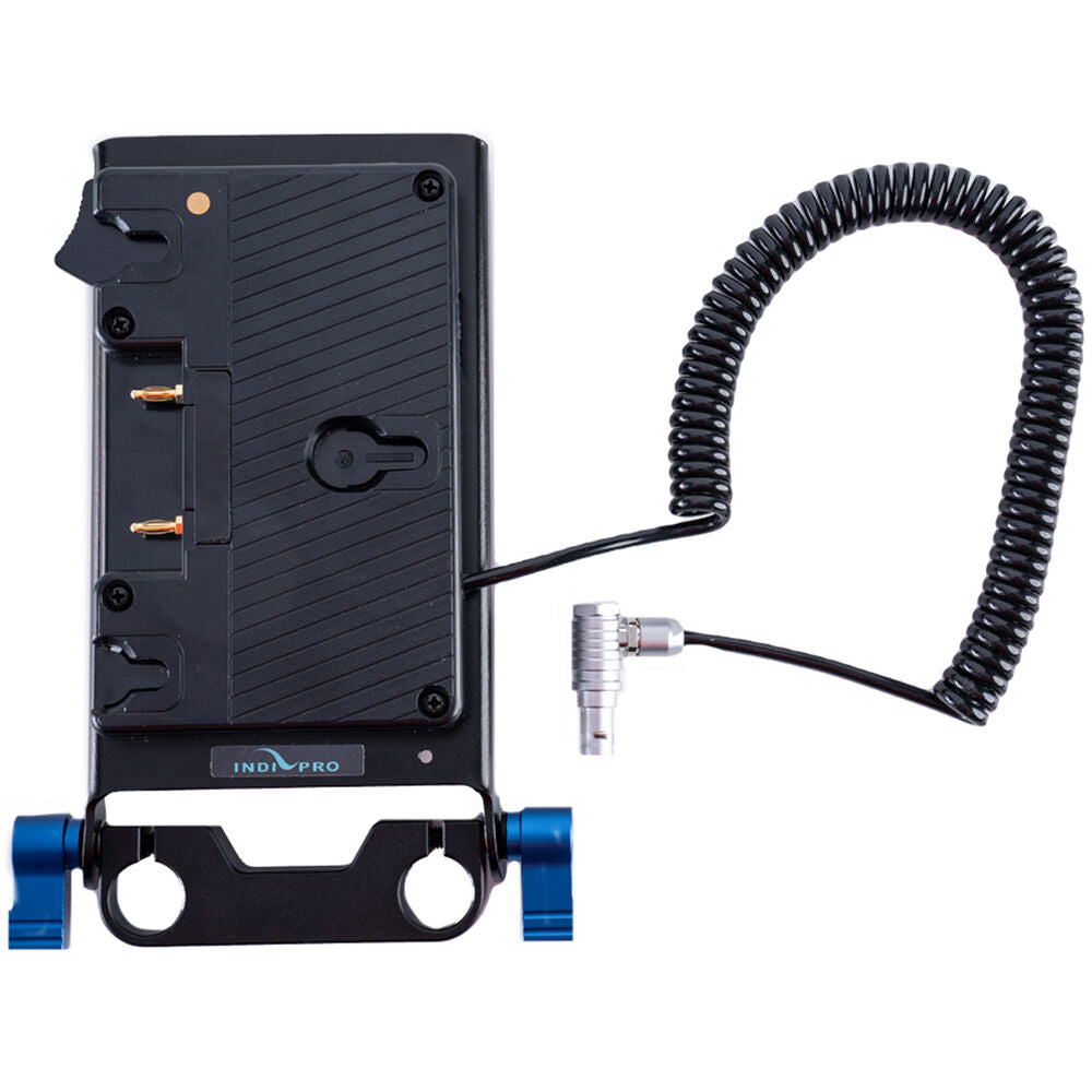 Use this Gold Mount Battery Plate with 15mm Rod Mount from IndiPRO Tools to mount a Gold mount battery on a camera rig to power a cinema camera such as a RED KOMODO, as well as power numerous accessories. The integrated coiled cable extends from 12 to 36" in length and features a 2-pin LEMO-type connector to power the camera.