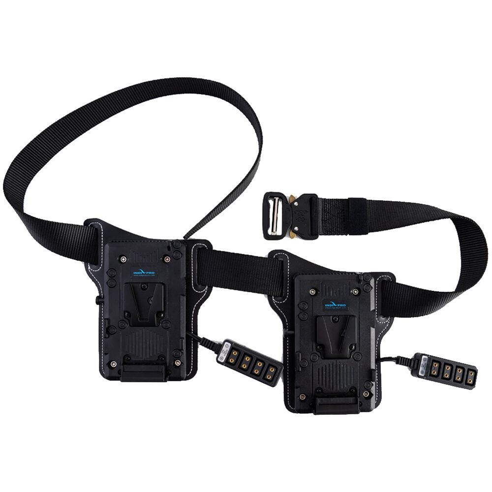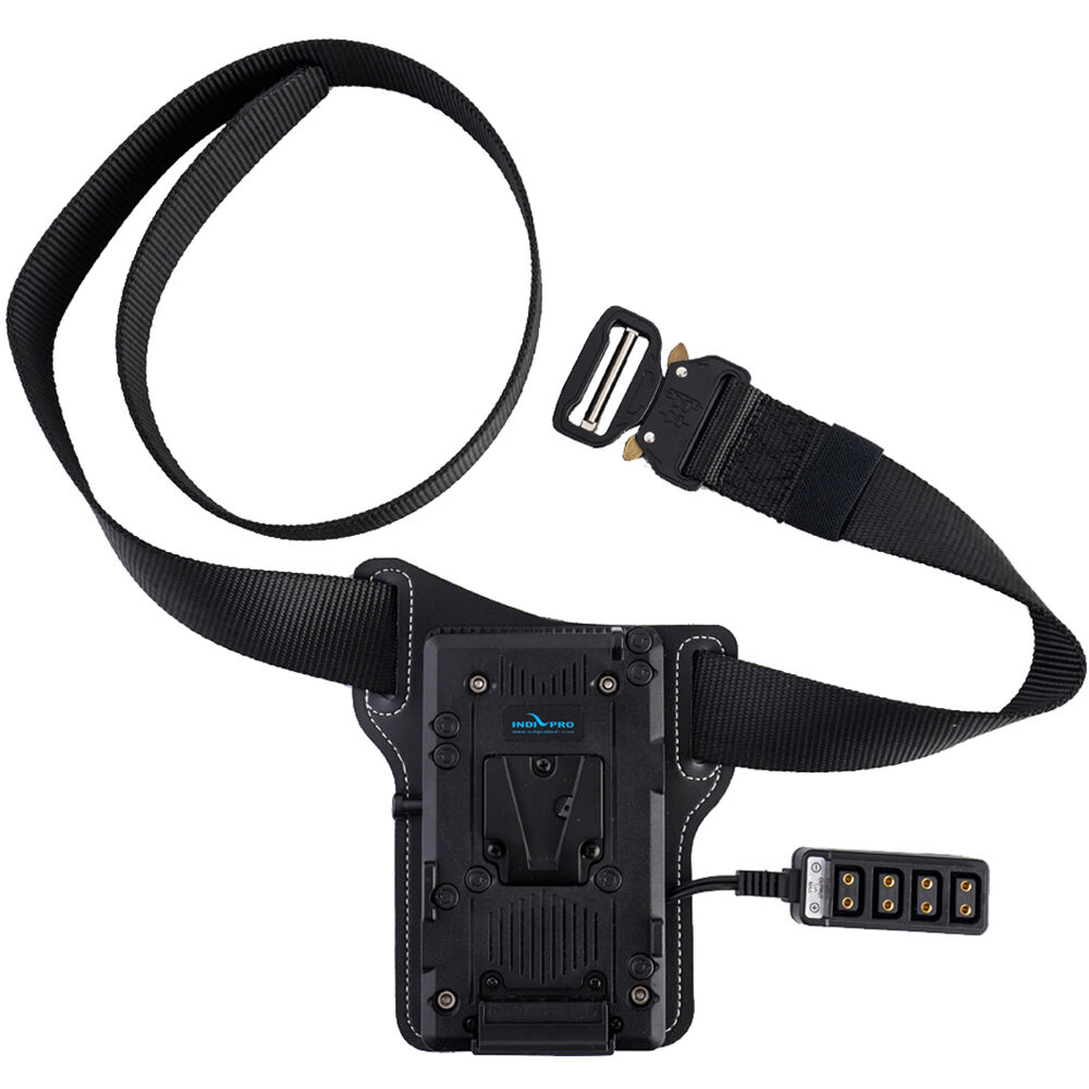 Belt with V-Mount Battery PlatePower Camera and Accessories When Mobile5 x D-Tap Outputs on Battery PlateAdjustable Belt Fits Waists up to 48" Power your camera and equipment in a mobile setup with this heavy-duty Universal V-Mount Battery Belt with 5 x D-Tap Outputs from IndiPRO Tools . The adjustable belt fits waists up to 48" and features a standard V-mount battery plate. The plate provides five D-Tap outputs to power a wide variety of camera and production equipment.