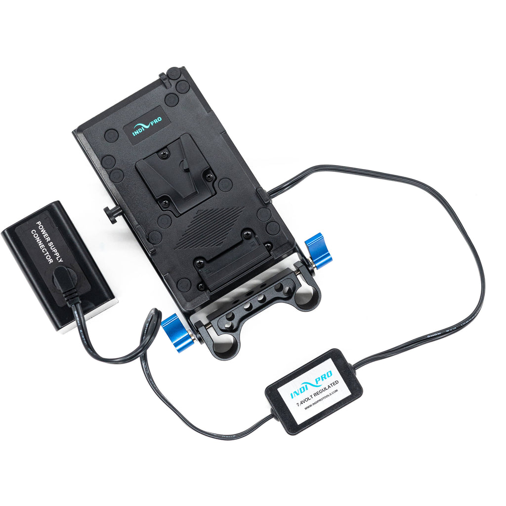 The plate features a built-in 15mm LWS rod bracket for mounting quickly and easily on your camera rig, and it can also be used as an adjustable counterweight. The V-mount plate incorporates a 12 to 16V D-Tap output for powering select accessories.