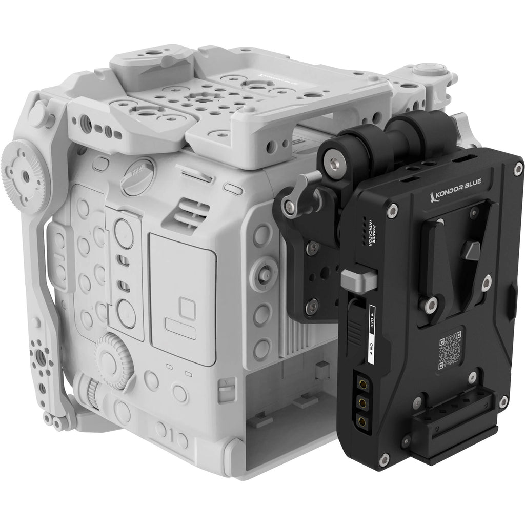 The Canon EOS C400 Back Plate from Kondor Blue attaches directly to the back of the C400 via four included 4mm screws, expanding the power and accessory mounting capabilities of the camera without preventing the use of Canon BP-AN batteries.
