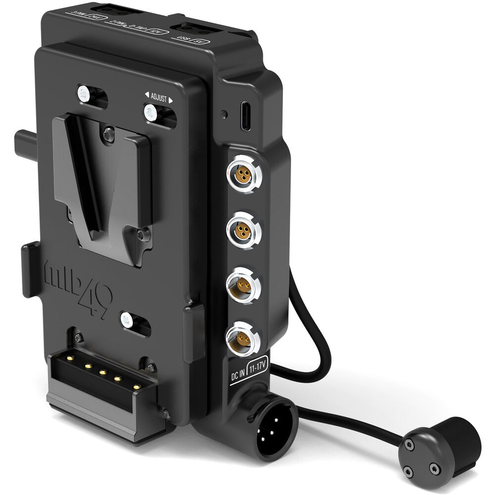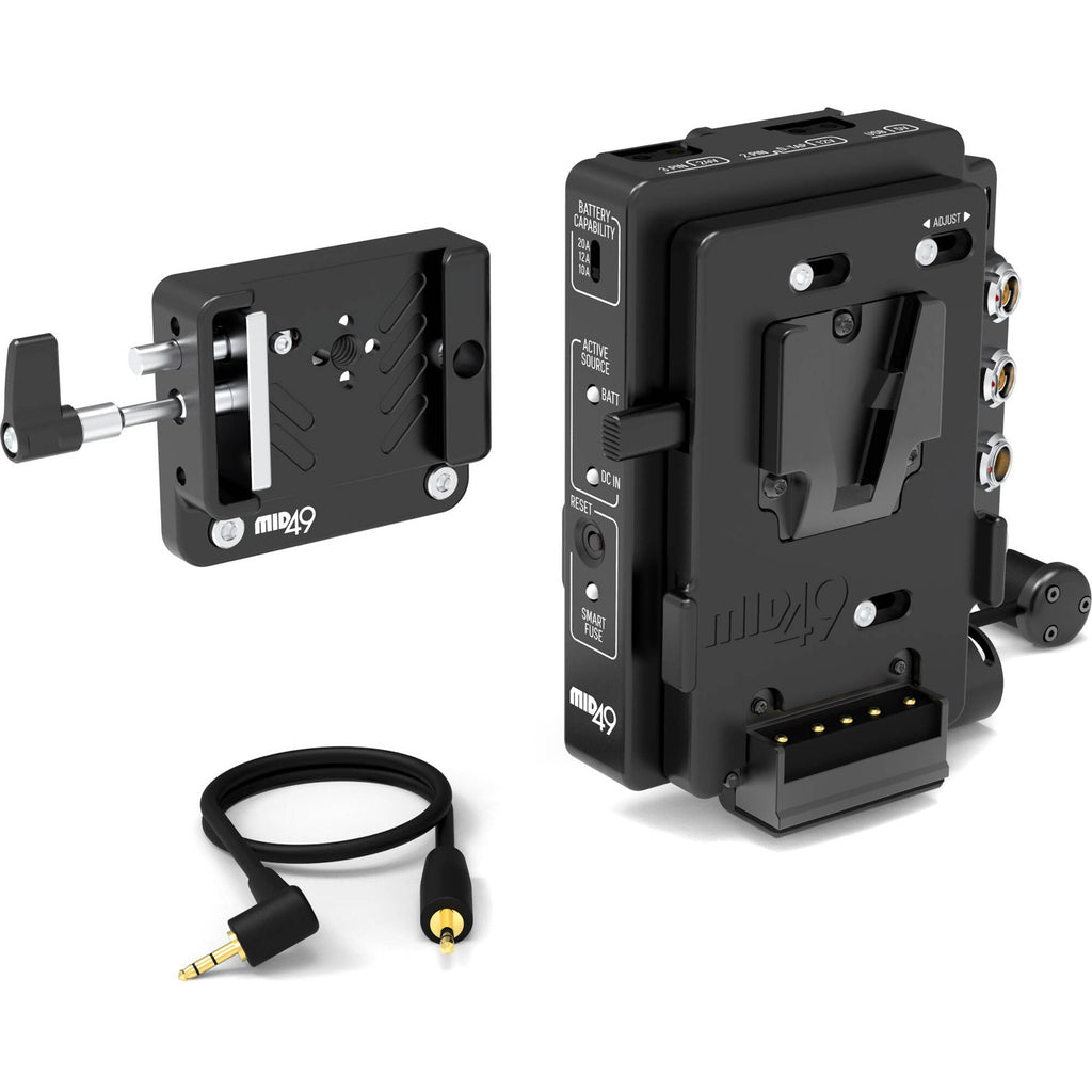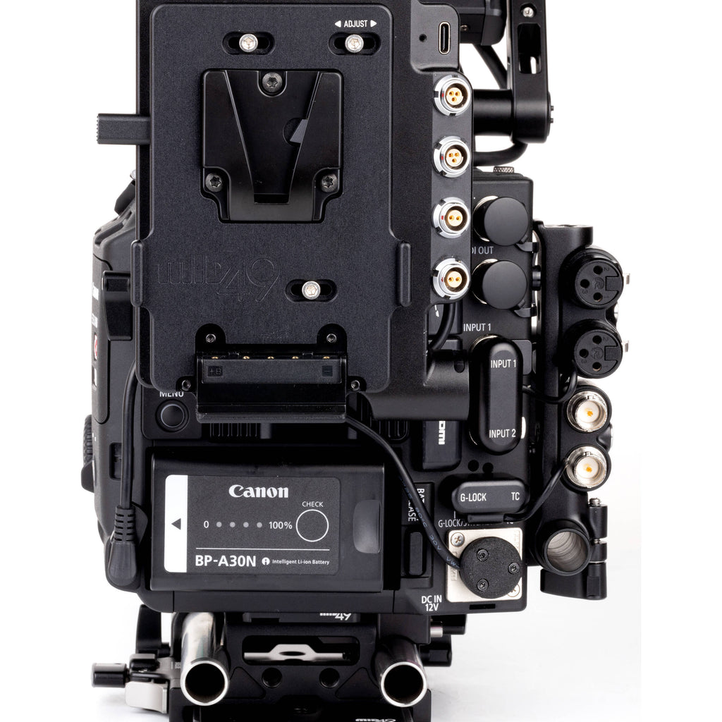 MID49 is an intelligent power solution for your camera that allows you to power your C400 using standard V-mount batteries. It features a 4-pin XLR for an optional power input, which allows you to hot-swap batteries without turning the camera off. A variety of output ports let you safely power accessories without exceeding the capacity of your battery; additionally, the power distribution box features a Smart Fuse system that will shut down power to the accessories should they exceed your battery's capacity to keep your camera running. The box enables you to use a BP-A30N battery as a backup, and it provides remote start/stop.