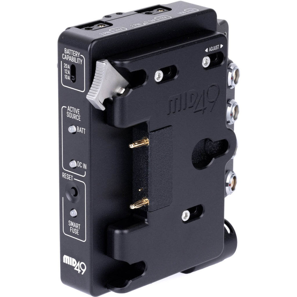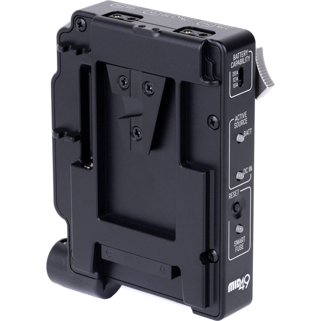 This Power Distribution Box DB-8 for Sony BURANO with Adapter Cable for Sony VENICE & VENICE 2 from MID49 is an intelligent power solution for your camera that allows you to power your Burano using standard Gold Mount batteries. It features a 4-pin XLR for an optional power input, which allows you to hot swap Gold Mount batteries without shutting down the camera. A plethora of output ports allow you to safely power accessories without exceeding the capacity of your battery; additionally, the power distribution box features a Smart Fuse system that will shut down power to the accessories should they exceed your battery's capacity in order to keep your camera running. The box enables you to remotely start and stop your Burano, and the included adapter cable allows you to start and stop a Venice/Venice 2.