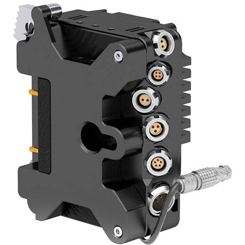 Once mounted and configured, attach the integrated RED-compatible EXT cable to power your camera and provide enhanced communication and control. Enjoy additional power output options such as D-Tap, 6-pin power failover, 9-pin pass-through power for a monitor or extension, as well as 5-pin timecode, BNC genlock, 4-pin RED CTRL, and a Fischer R/S port without having to connect your external devices to your camera.