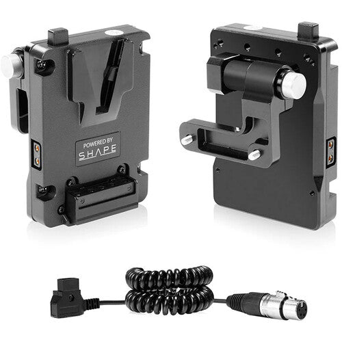 The SHAPE Pivoting Battery Plate screws into the rear lower thread holes of the Canon EOS C400, allowing for the attachment of a V-mount battery. Its pivoting design ensures access to the camera's battery compartment while providing hot-swapping capability. Along with a D-Tap port for powering the camera and accessories, the plate features a digital fuse for safe and reliable operation. Connect it with the included D-Tap to female 4-pin XLR power cable for maximum versatility. The system also incorporates SHAPE's patented 15mm push-button technology, enabling easy tilting for quick access to the rear connectors and BP battery. Enhance your Canon EOS C400 setup with this advanced battery plate solution.