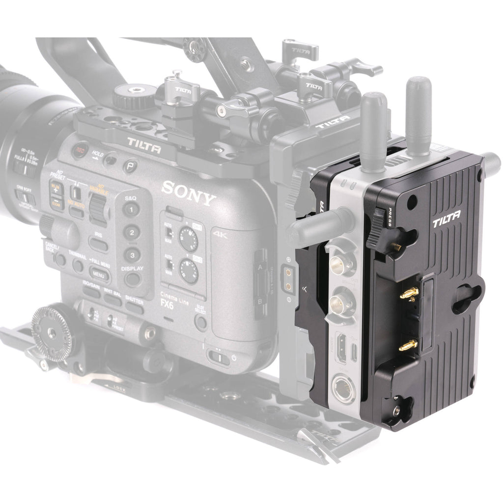 Power your DJI Video Transmitter along with your camera with this Gold mount to Gold mount Power Supply Module from Tilta. The power module consists of a Gold mount battery plate and a Gold mount camera-side plate that mount on either side of the DJI Video Transmitter. The Gold mount camera-side plate mounts quickly onto the camera, and the Gold mount battery plate provides the ability to power the transmitter and the camera simultaneously with a long-lasting, separately available Gold mount battery.