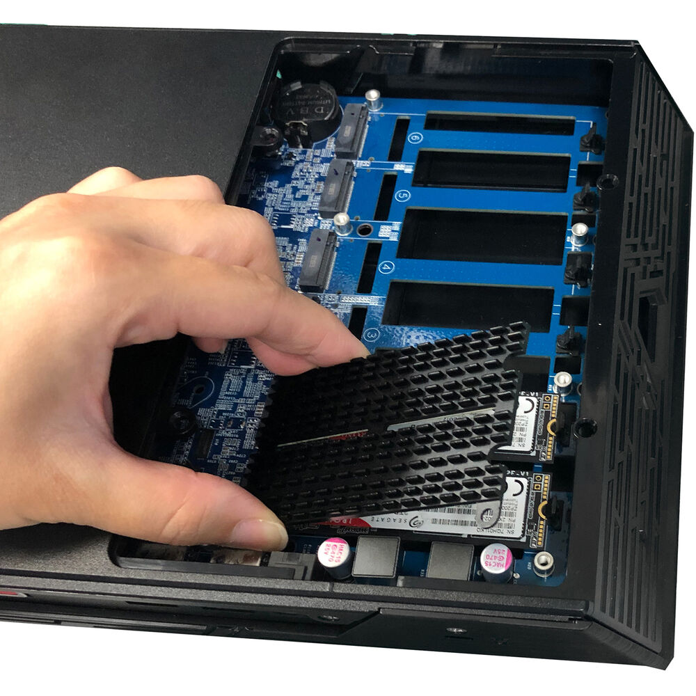 Compatible with Asustor Flashstor FS67 and FS68 series devices, this M.2 Heatsink Kit can cover six M.2 slots to help dissipate heat and maintain optimal performance. It also works with the AS-T10G3 M.2 PCIe adapter card.