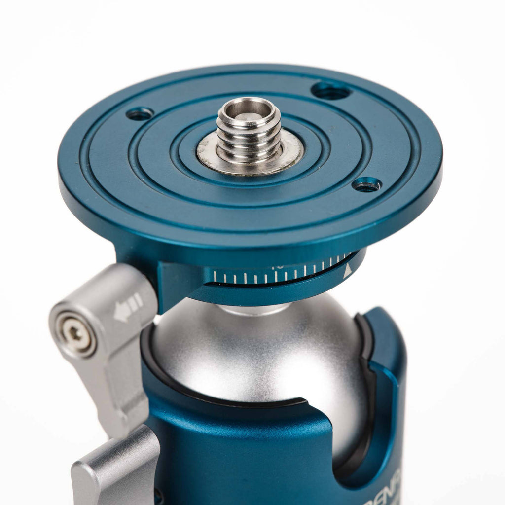 An advanced ball head that provides excellent stability and a load capacity of 17.6 lb, the NOVOFLEX NBBH Series 3 Ball Head from Benro features an intuitive design with a dual panning system that allows seamless panoramic shots with top and bottom pans. The precision ball lock with tension control provides movement fine-tuning for secure positioning. The removable Arca-type clamp features a hidden hex key as well as a convertible mounting thread. Three vertical tilt notches allow for switching to portrait orientation at various angles. The included bubble level enables you to accurately level out your shot, and the head features a safety lock with pull and twist functionality for the quick release plate.