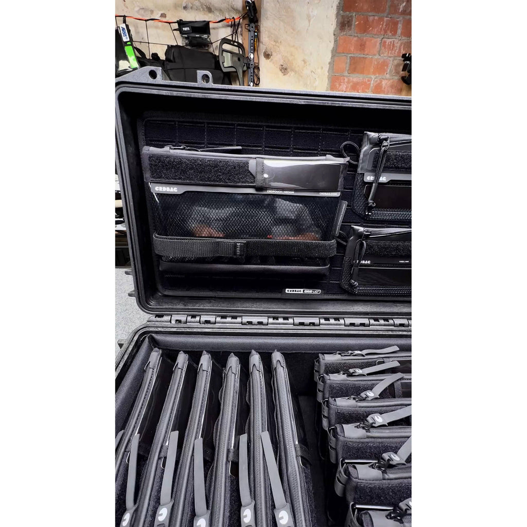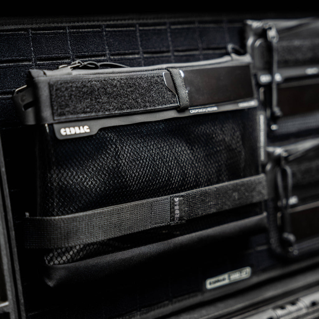 Secure your CRDPOUCH with the Elastic Strap for MOLLE to GRID-LID (2-pack) from CRDBAG. The strap has attachments on both ends for easy fastening to the MOLLE surface or proprietary GRID-LID on your CRDBAG hard-shell carry-on case. Attach the strap to the MOLLE panel and stretch it over your pouch to keep it in place and add an extra layer of security. Made from elastic, the strap has a hook-and-loop backing.