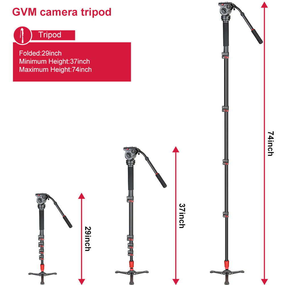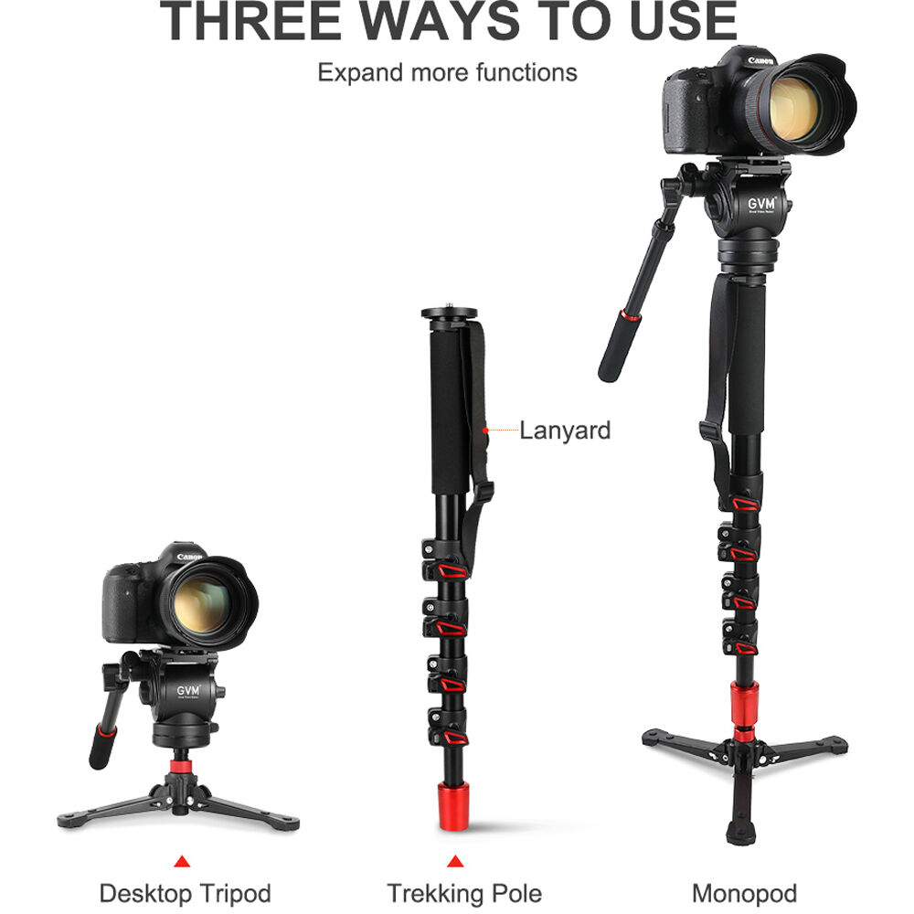 GVM D190 Aluminum 5-Section Monopod with Fluid Head