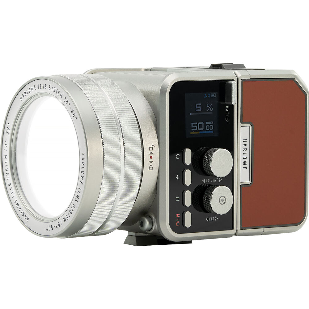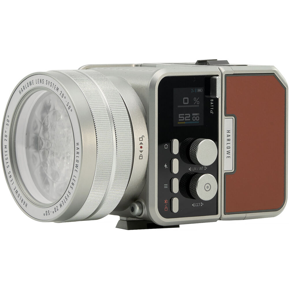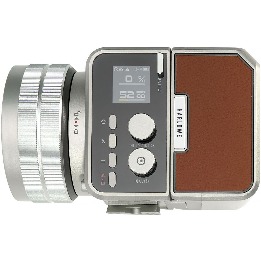 The Mini Max Bi-Color LED Monolight Creator Kit from Harlowe is a compact and powerful 40W bi-color COB LED monolight with an adjustable 20 to 45° Mini Max lens to create up to five times more illumination for content creators and vloggers. With the small light's ability to mimic the power of multiple fixtures, the Mini Max creator kit is ideal for on-the-go shooting and performs in extreme temperatures from 14 to 104°F. The kit includes a rechargeable 99Wh lithium-ion battery, AC dual port adapter, 65W power adapter, and a 9.8' USB-C charging cable for multiple powering options. Produce bright light with the included battery for up to 19 hours of runtime at 10% capacity or over two hours at full power. Produce up to 7325 lux at 3.3' at 6500K or adjust the settings wirelessly via Bluetooth connectivity or the NFC technology-powered Harlowe app. Refine your light further with the Mini Max's onboard controls and 0 to 100% dimming capabilities, and create unique light effects with the kit's included color gels, barndoor set, white diffuser dome, and grid. Complete with a vintage look, the light includes a brown faux leather finish with matte silver accents to create an eye-catching on-the-go lighting kit.