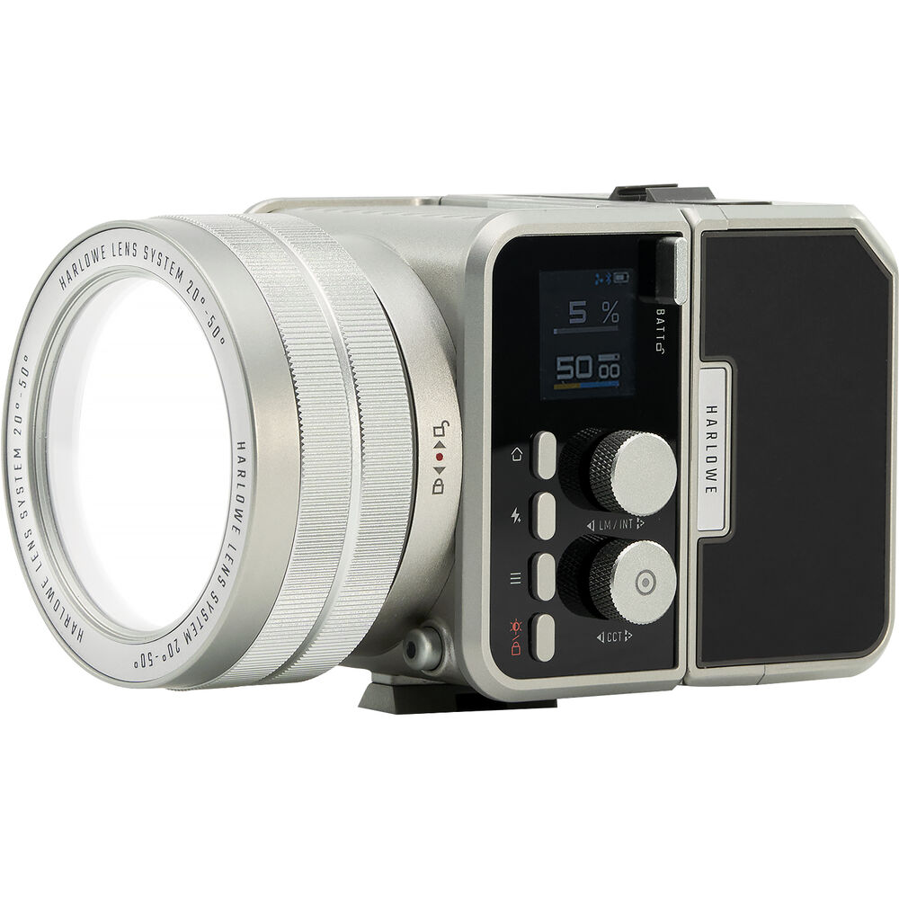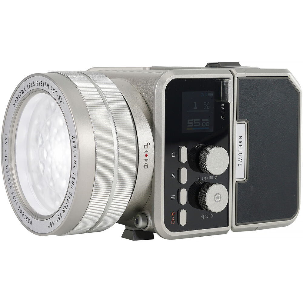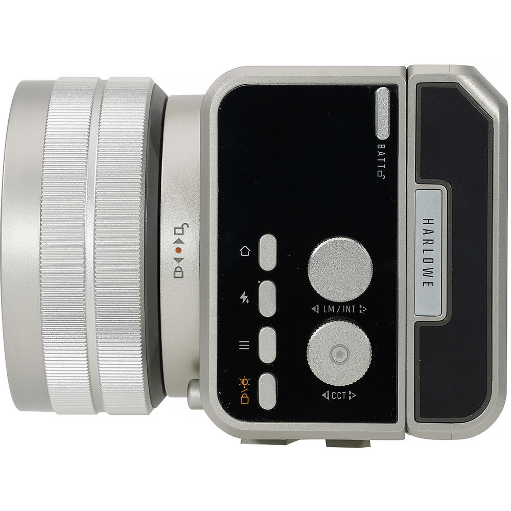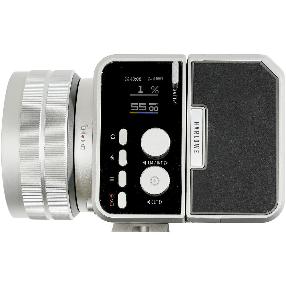 The Mini Max Bi-Color LED Monolight Creator Kit from Harlowe is a compact and powerful 40W bi-color COB LED monolight with an adjustable 20 to 45° Mini Max lens to create up to five times more illumination for content creators and vloggers. With the small light's ability to mimic the power of multiple fixtures, the Mini Max creator kit is ideal for on-the-go shooting and performs in extreme temperatures from 14 to 104°F. The kit includes a rechargeable 99Wh lithium-ion battery, AC dual port adapter, 65W power adapter, and a 9.8' USB-C charging cable for multiple powering options. Produce bright light with the included battery for up to 19 hours of runtime at 10% capacity or over two hours at full power. Produce up to 7325 lux at 3.3' at 6500K or adjust the settings wirelessly via Bluetooth connectivity or the NFC technology-powered Harlowe app. Refine your light further with the Mini Max's onboard controls and 0 to 100% dimming capabilities, and create unique light effects with the kit's included color gels, barndoor set, white diffuser dome, and grid. Complete with a vintage look, the light includes a midnight black faux leather finish with matte silver accents to create an eye-catching on-the-go lighting kit.