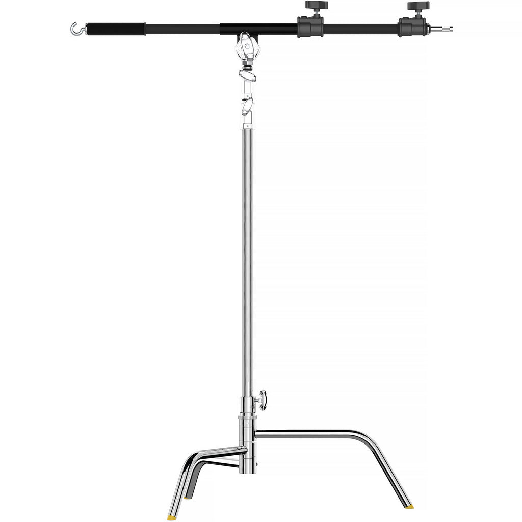 Beefy steel construction and oversized locking knobs will securely hold accent, hair, and top lights at enough distance to position the light stand out of the image area. Adjustable sleeves and a heavy-duty counterbalance hook make it easy to quickly and effortlessly find the perfect balancing points for the mounted gear.