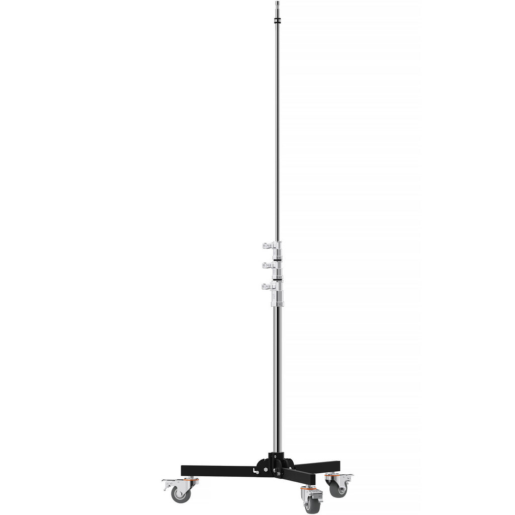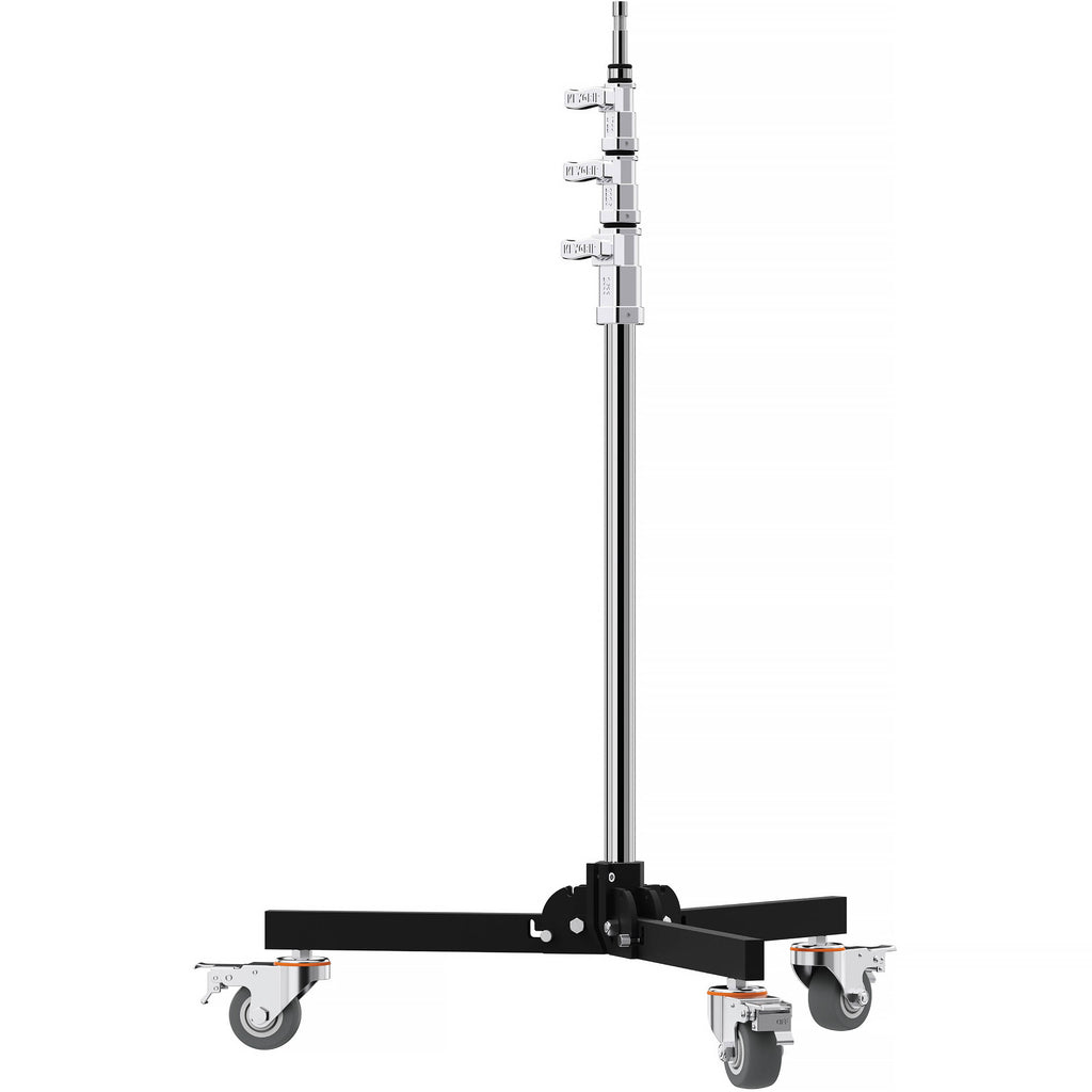 The 11', 3-stage Keygrip Baby Folder Roller Stand from Impact is precision manufactured to exact standards and specifications for pro video, photo, and cinematography applications. Three steel riser sections combined with beefy all-metal legs and castings will easily support light fixtures, grip equipment, and accessories. Precision manufacturing ensures steady and secure rigging for valuable studio gear and delivers long-lasting operation in the most demanding environments.